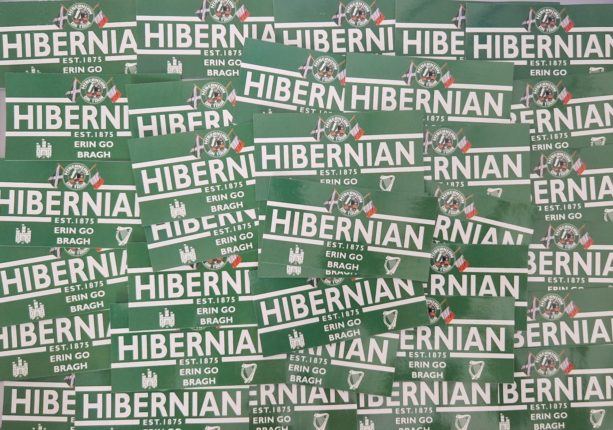 Pack of 25 10x5cm Hibs, Hibernian Erin Go Bragh Football/Ultras Stickers.